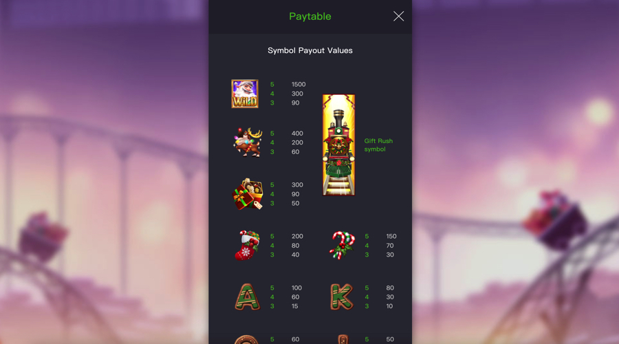 A fejlesztő az PG Soft, És a mobil slot címe a neve Mikulás ajándékrohamaAz elrendezés öt tárcsát használ három sorral és 30 fix nyerővonallal, a nyereményeket balról jobbra ellenőrizve.